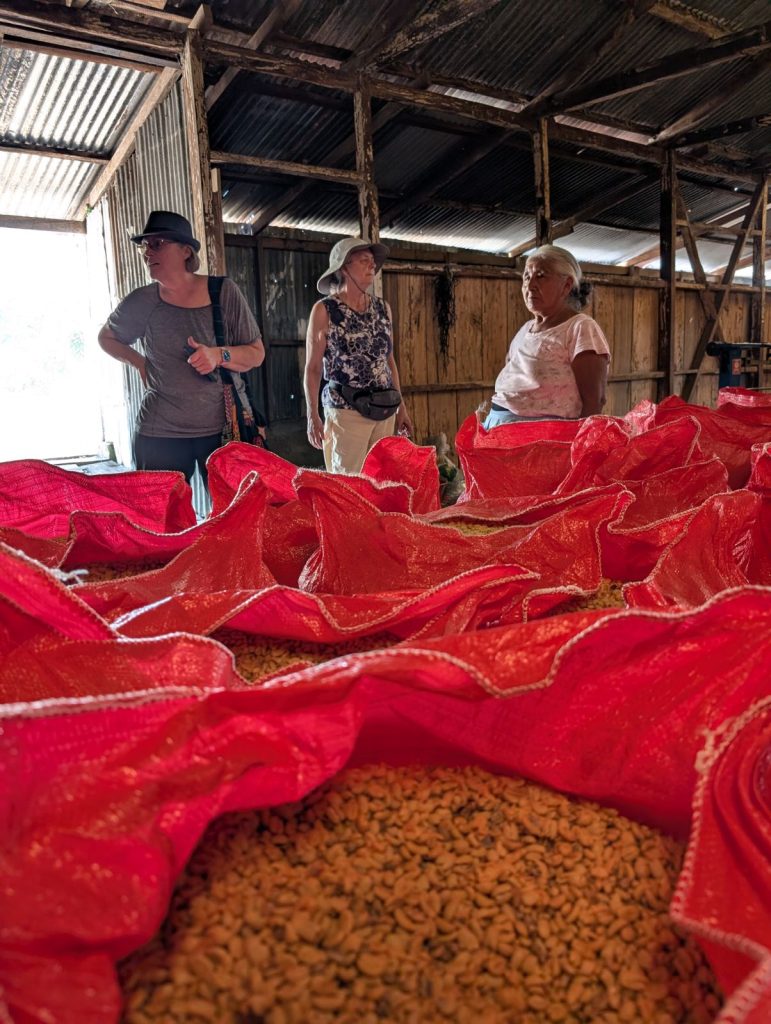 Nous participons à la cueillette du café avec Esteban, propriétaire d’une petite parcelle. Cette expérience nous fait prendre conscience des conditions de travail difficiles et l’importance d’acheter équitable.