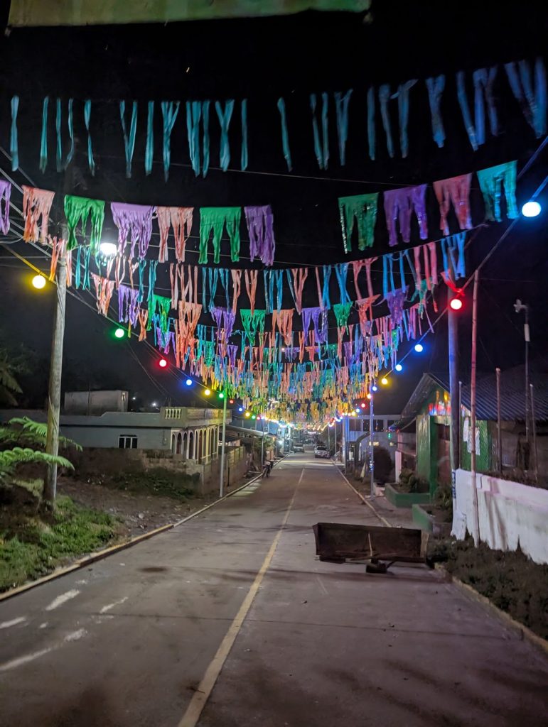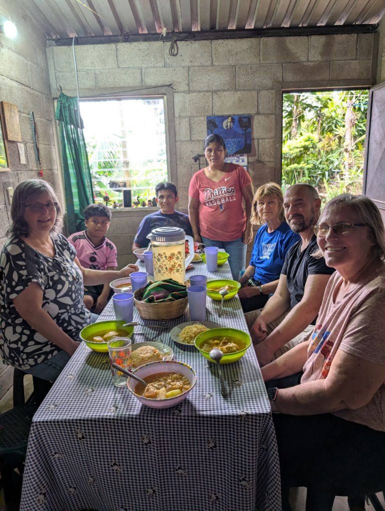 Comme à La Florida, tortillas, frijoles, poulet, plantain et œufs sont fréquents, mais nous découvrons aussi le thé de jamaica, l’atole à base d’avoine et les croquettes de pacaya. Ces repas nous permettent de créer des liens, avec les femmes souvent seules avec leurs enfants, les maris travaillants loin ou à l’étranger.