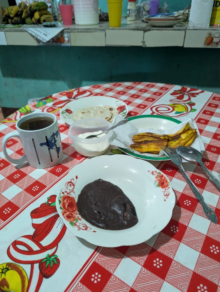 Les repas, préparés par deux femmes du village, nous surprennent avec un menu varié, malgré la présence constante de frijoles, tortillas, poulet et œufs.